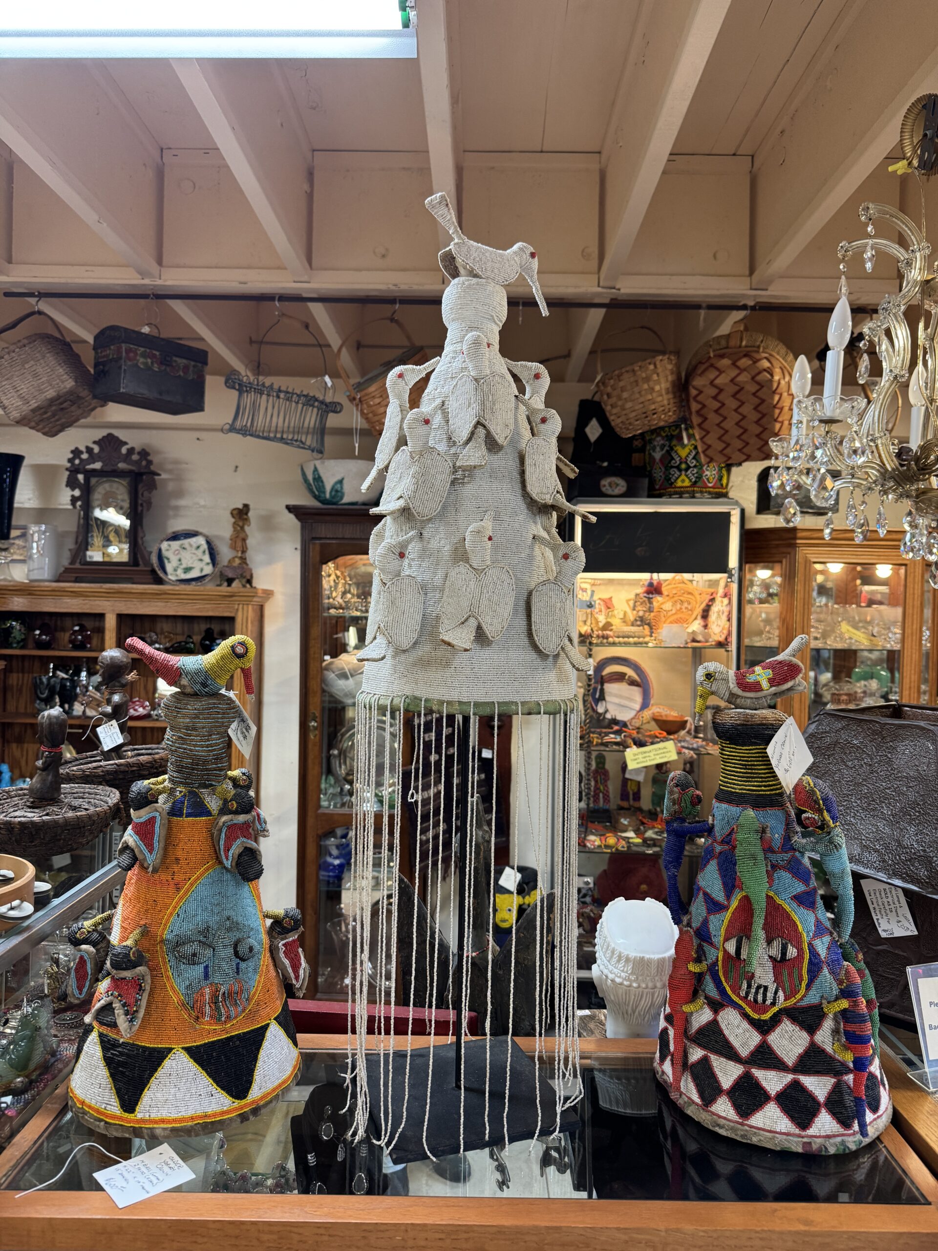 Vintage White Beaded Yoruba Crown from Nigeria Africa