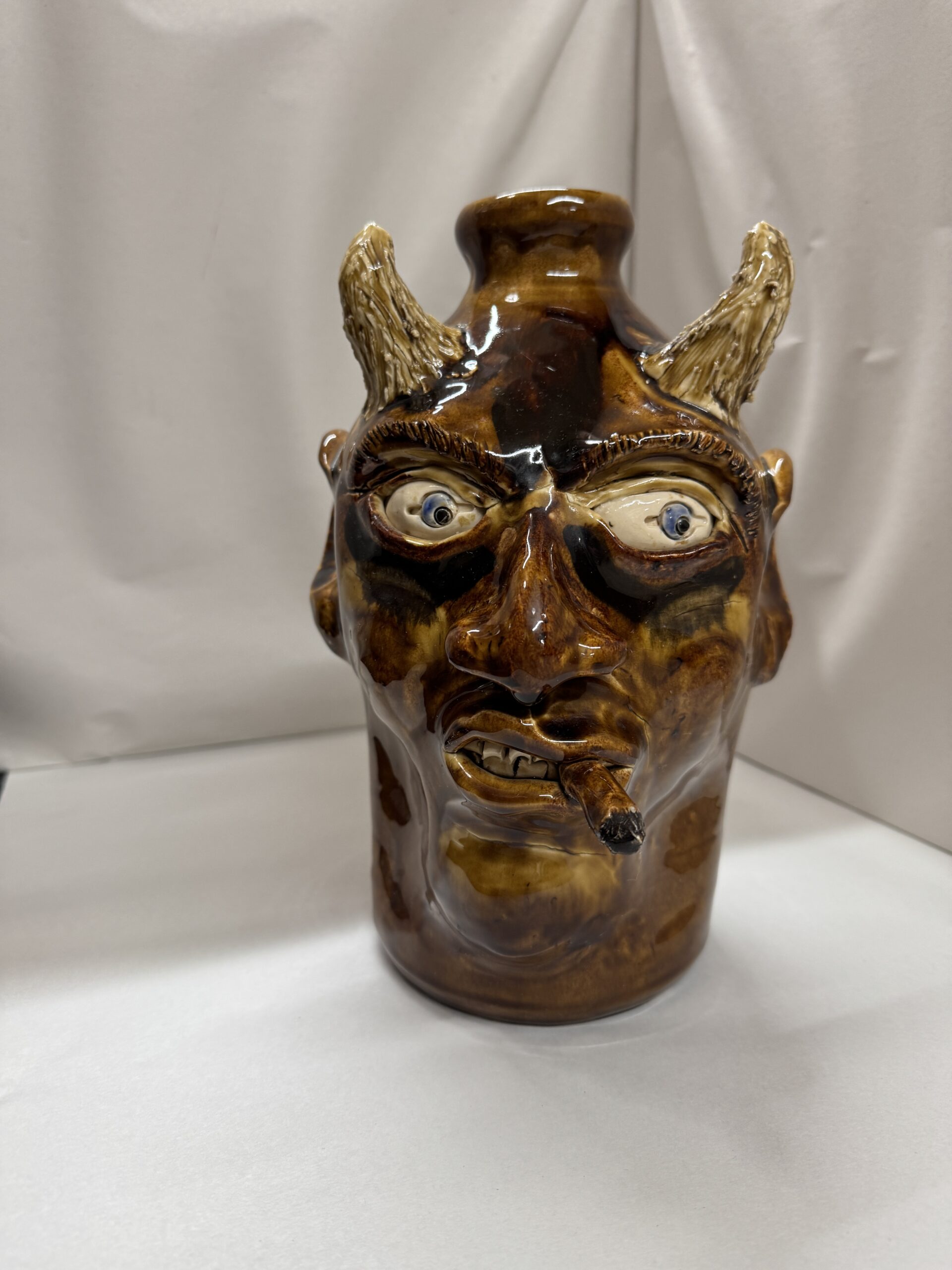 Eric Hewell Folk Art Face Jug Smoking Devil January 21, 2026 | by pdaadmin | Eric Hewell Folk Art Face Jug Smoking Devil approximately 11″ some production firing cracks and flaws — no broken parts Signed: E. Hewell $2000 Share this post Twitter Facebook Google+ LinkedIn Pinterest Email Recommended for You T.S. Driskell Bayou Country Painting 1961 Vintage Carved Wood Folk Art Rubenesque Bathing Beauty Ser mel Tonala Jal Mexico Large Paper Mache Lion 2 Vintage Sumatra Indonesia Beaded Conical Hats